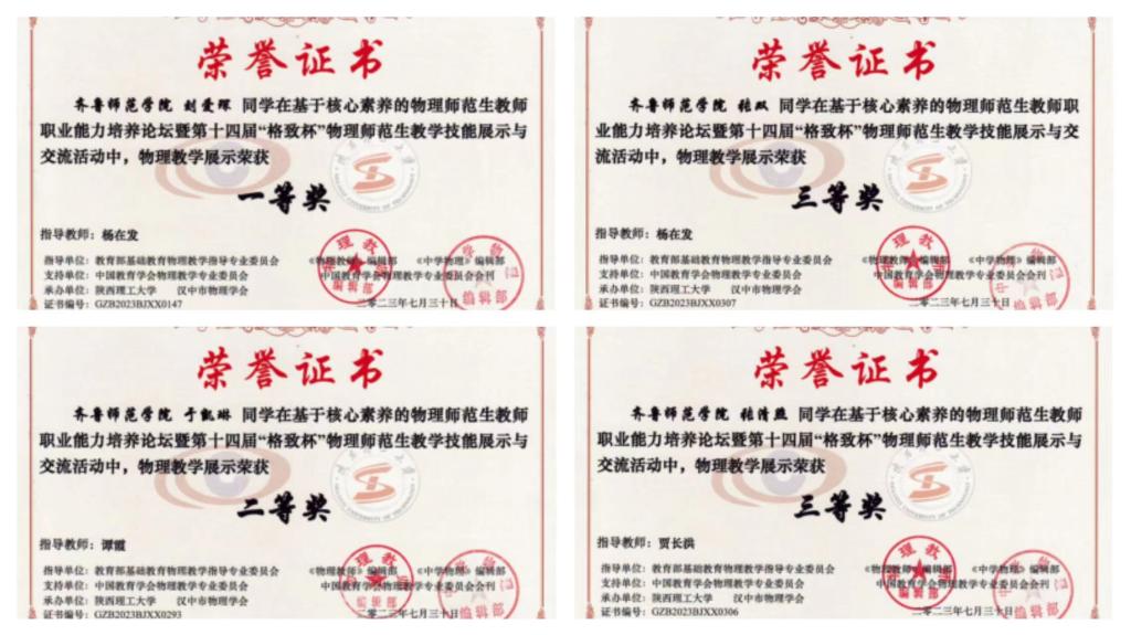 物理与电子工程学院学子在第十四届“格致杯”物理师范生教学技能展示与交流活动中获佳绩