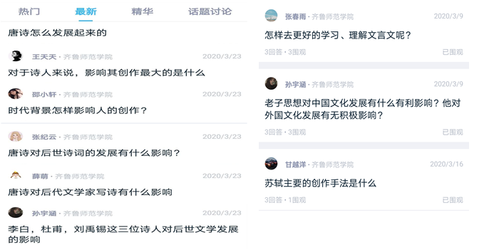 在共享课学习的基础上,学生带着课程思考与问题老师进入翻转课进行直接交流,互动答疑,而且课堂互动答疑还增加了学生们相互交流、相互鼓励、相互促进的方式,越问越勇,越问越明。