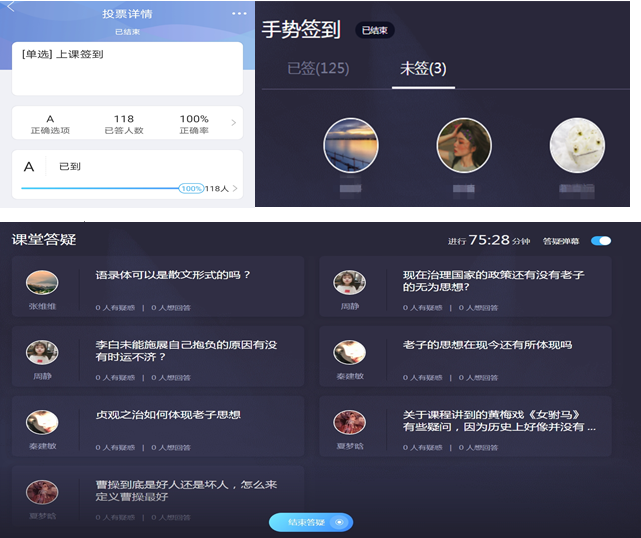 签到是加强学生到课、学习的一种方式,也是加强学生提高自控力的一种途径。通过翻转课的签到、投票、提问等方式观测学生的专注力。