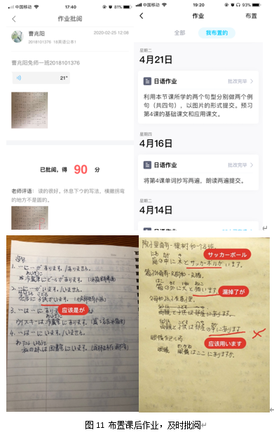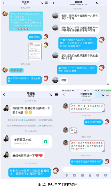 课程结束后,任课教师在qq群内布置作业,要求学生提交相应的录音和学习笔记。及时批改作业,通过作业中出现的问题和笔记的记录情况,找到学生的知识薄弱点,在下次课上着重说明,并以此为依据及时调整教学计划。另外,任课教师还通过qq等通讯工具与学生交流,解答学生的疑惑。