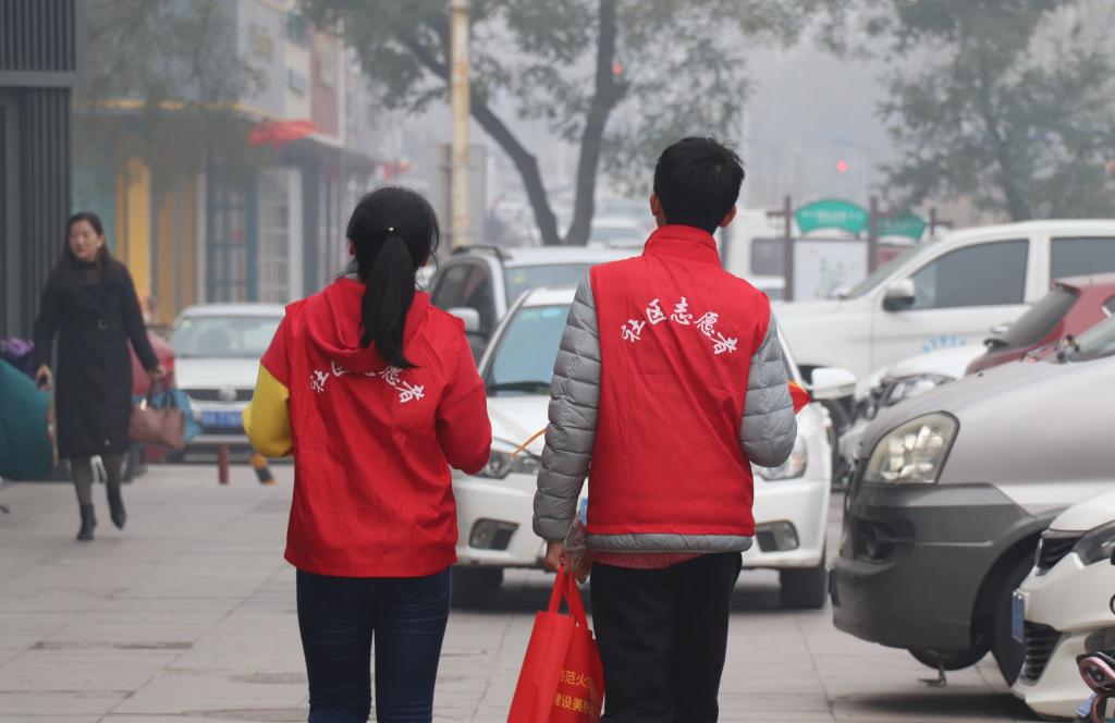 学生深入社区居民广场、商贸区主干道等人员密集的重点公共场所,向沿街商铺、过路行人发放消防知识宣传页以及印有消防安全标语的围裙、手提袋、临时停车贴纸等小礼品。在发放过程中,学生针对不同人群有重点得宣传各类消防安全知识,提醒居民在日常生活中电瓶车充电、取暖用电等方面的注意事项。