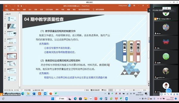 为切实促进教学质量持续提升,本学期,学校改革原有的教学质量检查结果仅集中反馈到部分教学管理人员的传统做法,以五个校级督导组为单位,下沉到二级学院,分学院、分组开展了本学期教学质量检查线上反馈,学院院长、副院长和专任教师等相关人员参加了反馈会。