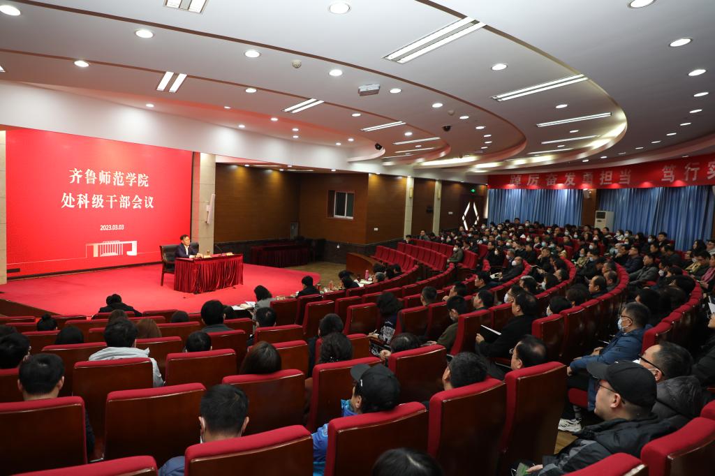 3月3日下午,学校在章丘校区学术报告厅召开全体处科级干部大会,党委书记林松柏出席会议,对2023年工作要点进行了解读安排,并对处级选拔任用工作进行了动员部署。党委副书记赵敏主持会议,校领导、全体处科级干部及二级学院教研室主任参加会议。