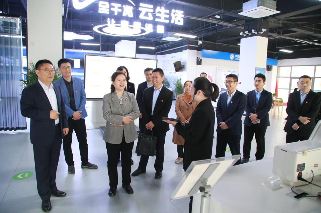 赵敏一行参观了中移铁通山东分公司数智体验厅和《百年铁路 百年通信》文化长廊,听取了山东铁通自主研发的TTPark智慧园区管理系统等产品的讲解,对智慧党建等系统进行了深入探讨交流。