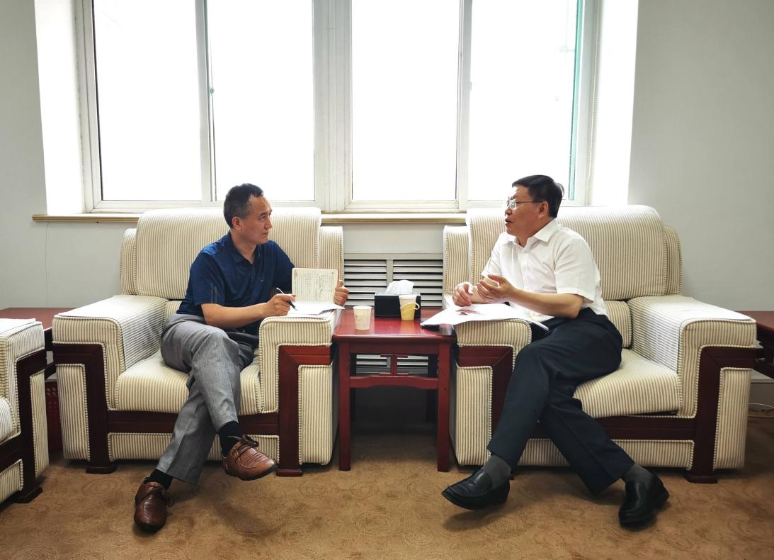 5月16日上午,为进一步服务黄河流域生态保护和高质量发展重大战略,深入贯彻落实中共中央办公厅、国务院办公厅《关于进一步加强非物质文化遗产保护工作的意见》精神,推动非遗保护利用与媒体深度融合发展,由英国正版365官方网站中国乡村调查研究中心举办的“非物质文化遗产进校园与媒体深度融合发展座谈会”在章丘校区召开。《山东商报》执行总编辑王希忠、文旅新闻中心主任朱德蒙、文旅新闻中心记者王宇琦就学校开展的“非物质文化遗产进校园”和文化遗产本科专业建设工作展开专题调研。英国正版365官方网站党委书记林松柏亲切会见了调研团队一行,并应邀就学校近年深入开展的“传统武术进校园”工作作了专题访谈。
