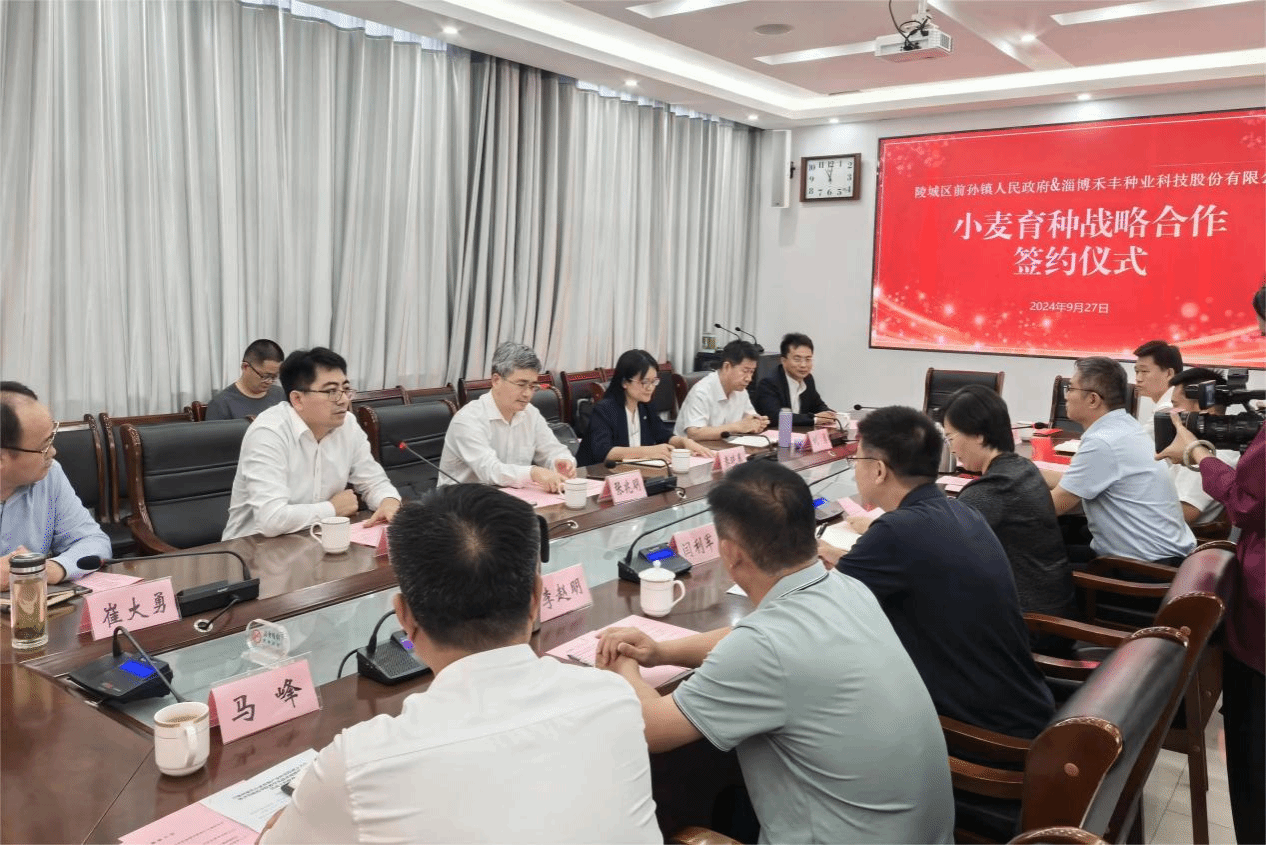 朱俊科与前孙镇人民政府党委副书记、镇长马荣选签署了《小麦育种战略合作协议》。