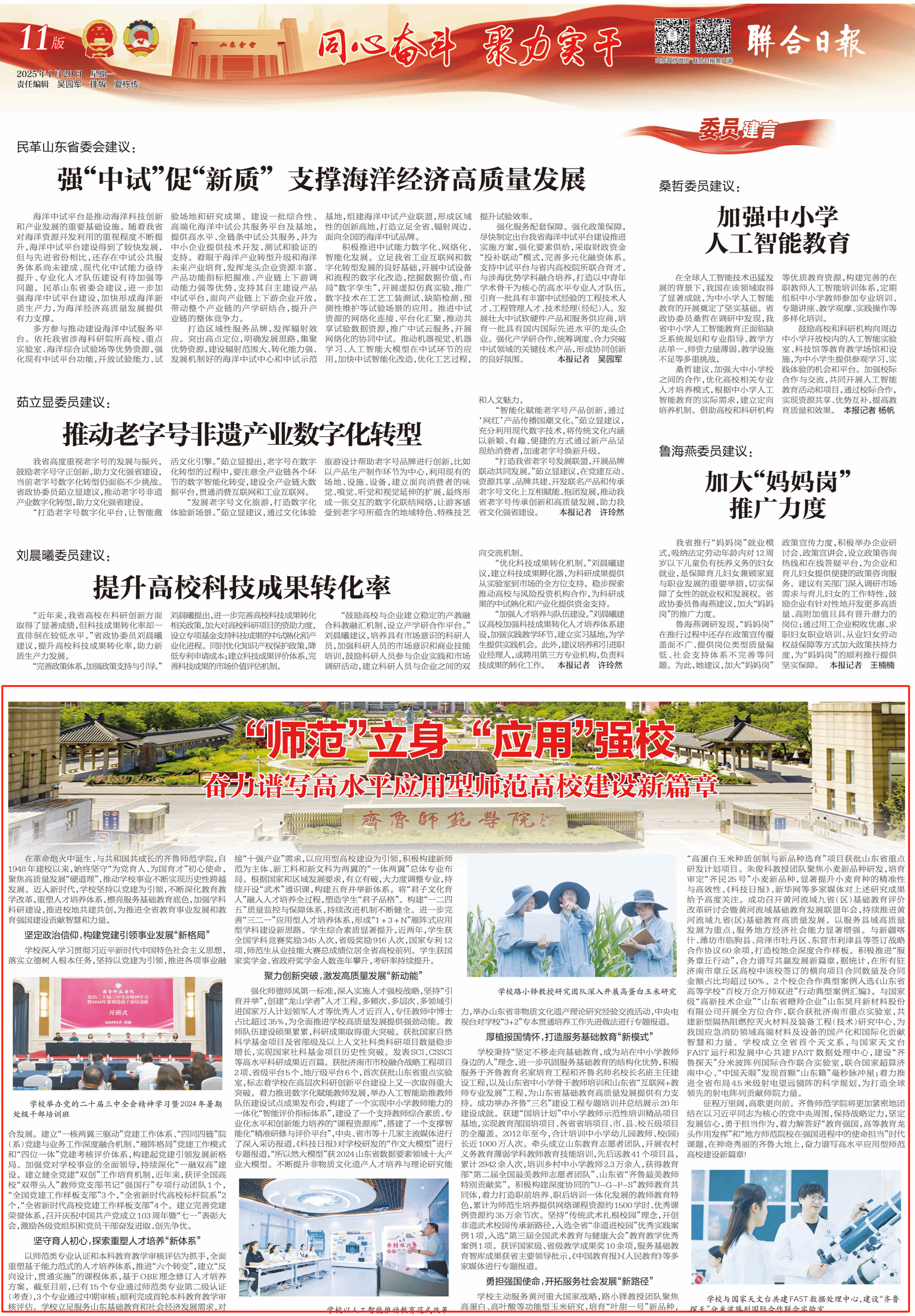 《联合日报》两会特刊报道学校高质量发展成果经验