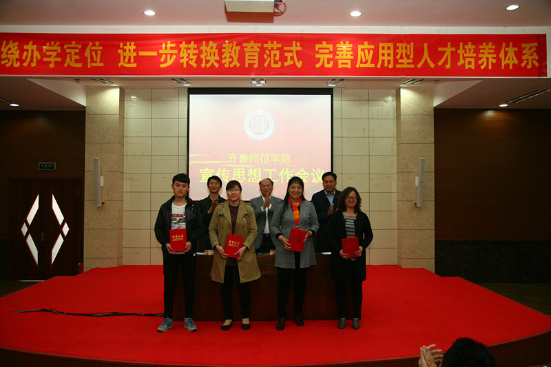二是,紧紧抓住“立德树人”这个根本任务,做好宣传思想工作。今年学校宣传思想工作要结合推进“两学一做”学习教育常态化制度化、学校第二次党代会确定目标的落实和备战本科教学工作合格评估等方面的工作,精心策划,认真组织,不断推进学校改革发展。首先,重在学用结合,着力深化党的理论创新成果的学习宣传。要着眼于适应和把握在从严治党中更加突出思想建党,坚持不懈地抓好思想理论武装,为学校改革发展夯实根基、引领方向;要从讲政治的高度,进一步充分认识推进“两学一做”学习教育常态化制度化的重大意义,始终把思想教育作为第一位的任务,坚持用党章党规规范党组织和党员行为,用习近平总书记系列重要讲话精神武装头脑、指导实践、推动工作。其次,重在凝神聚气,着力加强意识形态工作和舆论宣传引导。突出抓好意识形态工作,切实做到守土有责、守土负责、守土尽责;突出抓好舆论引导工作,为学校改革发展营造良好舆论环境;要着眼于适应和引领学校事业发展,统筹安排好对内对外宣传和网络宣传。第三,重在教育引导,着力培育和践行社会主义核心价值观。强化宣传引导、教育引导、典型引导,把社会主义核心价值观与全面推进思想政治教育、师德师风建设、精神文明创建和校园文化建设有机结合起来。第四,坚持文化育人,着力加强校园文化建设。坚持以“文化铸校”为指引,不断提升学校的文化品位和社会影响力;实施化人工程,构筑精神高地,凝练特色培育校园文化品牌,进一步提升学校的知名度和美誉度;要积极从中华优秀传统文化、齐鲁优秀传统文化中汲取力量,更好地发挥齐鲁文化的育人作用,将优秀传统文化转化为师生学习生活中的价值观念,深入推进文明和谐校园建设,积极引导全校师生员工追求高尚的道德理想。