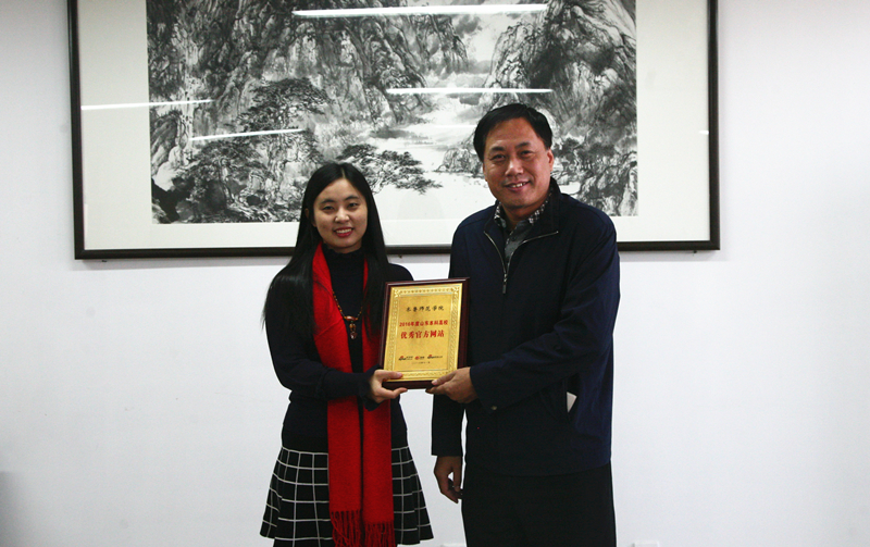 近日,由新浪山东发起“2016年度山东教育新媒体官方平台”活动结果揭晓,365官网官方网站获评“2016年度山东本科院校优秀官方网站”。党委副书记张殿臣代表学校从新浪山东教育频道副主编张晓盼手中接过奖牌。