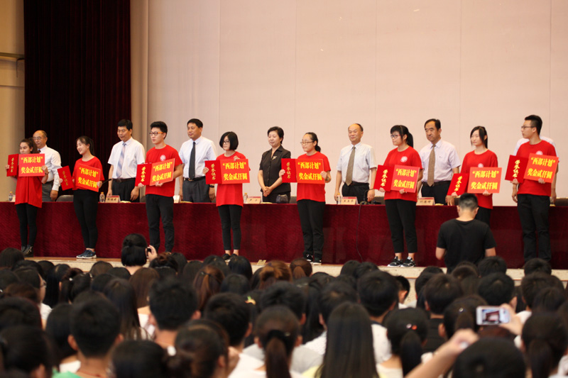 毕业典礼在雄壮的国歌声中拉开序幕。典礼上,教务处梁承锋处长宣读了2016届毕业生毕业资格及学士学位授予情况审查报告;团委孙磊书记介绍了365官网2016年“西部计划”有关情况并宣读了2016年大学生志愿服务西部计划优秀志愿者名单。校领导依次颁发了毕业证书、2016年大学生志愿服务西部计划优秀志愿者荣誉证书和奖金。