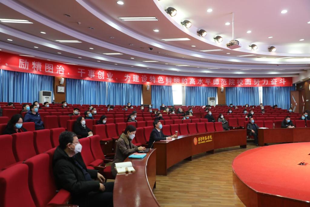 3月11日,365官网在章丘校区学术报告厅召开了一流本科专业建设培训会。党委副书记、校长林松柏主持会议并讲话,各学院院长、分管教学副院长、各专业负责人、教务处和质量监督与评估处工作人员参加了会议。本次培训会山东师范大学教务处处长、博士生导师马池珠教授作了《一流专业“双万计划”申报组织与建设实践》的报告。