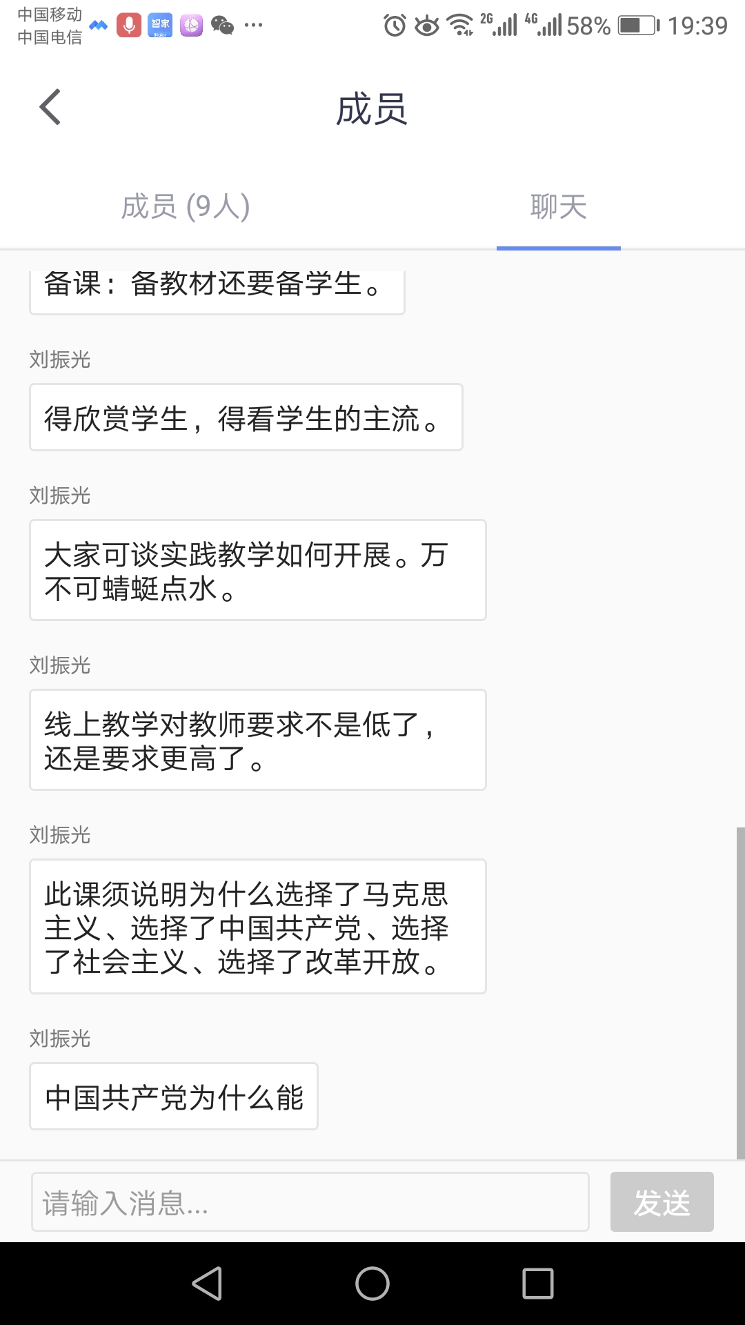 三是丰富教学载体,构建“学习通+QQ群+网络直播+++”模式,确保线上教学实时在线,增强思政课教学的亲和力和实效性。通过学习通、QQ群发布课前导引、思考题、讨论题、抢答题、辩论题、课后总结,充分发挥教师主导和学生主体作用,恰当处理二者关系,不断提升教师教学力和学生学习力。