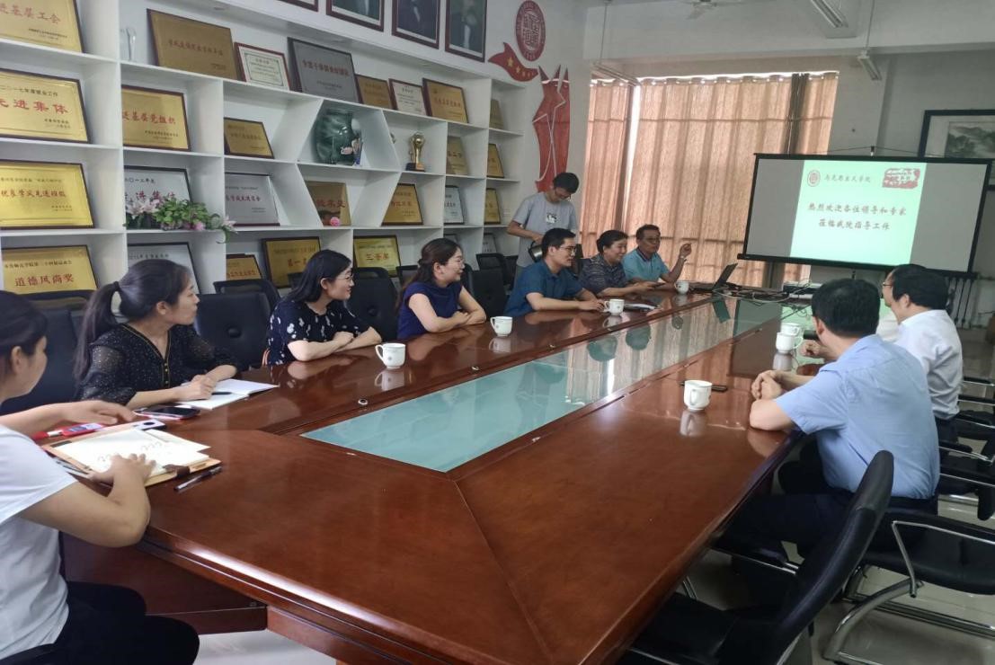 7月14日下午,省委教育工委有关部门领导来365官网调研基层党建工作。在听取学校有关汇报后,省委教育工委学校组织处副处长彭洪文来到马克思主义学院就师生党支部建设情况听取汇报并进行调研,学校党委副书记刘宝君、党委组织部部长李伯伟陪同调研,马克思主义学院党政班子成员、教师党支部、学生党支部有关人员参加调研活动。