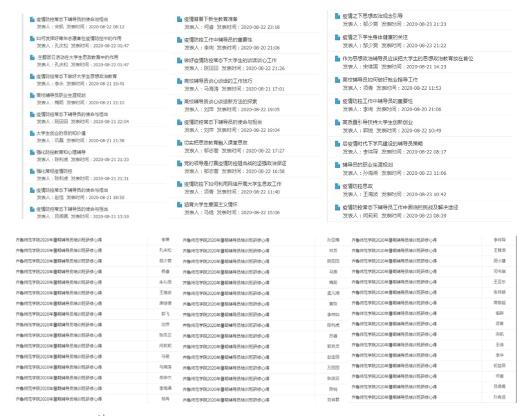 面对依然复杂严峻的新冠肺炎疫情防控形势,此次培训班创新培训形式,首次采取线上与线下相结合、培训与研讨相结合的方式,线上阶段充分依托国家教育行政学院高校辅导员网络学院研修平台,发挥“互联网+培训”优势,开启了“云研修”模式,通过课程学习、主题研讨、撰写心得等多个环节深化理论认识、巩固学习成果、加强工作交流,全体参训人员积极参与,深入思考,成效显著。学习培训过程中,针对疫情防控常态下辅导员的使命与担当、辅导员工作中面临的挑战与解决路径等问题,参训人员共计发帖留言150余条,点击浏览1200余人次;结合学习内容及工作实际,撰写完成学习心得体会80余篇。