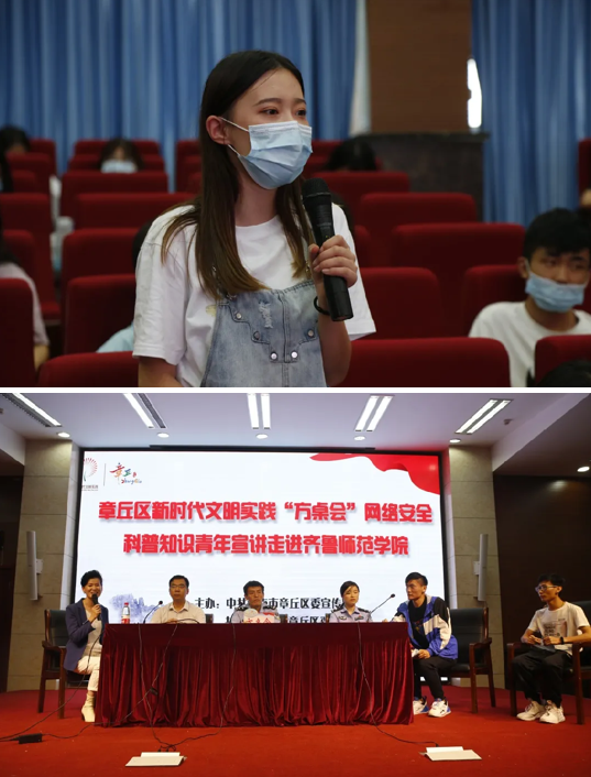 9月18日,由中共济南市章丘区委宣传办和章丘市济南区联合举办的新时代文明实践“方桌会”网络安全科普知识青年宣讲在365官网学术报告厅举行 ,党委副书记刘宝君会前接见了宣讲组一行。章丘区委宣传部副部长袁致甲、陈涛,共青团章丘区委副书记王越,365官网党委宣传部副部长辛源、团委副书记赵旭、安全管理处治安科科长李健等齐聚“方桌会”,畅谈“共建网络安全,共享网络文明”。章丘区公安分局反诈中心韩冰,区公安分局网警大队刘静,工商银行章丘支行刘晓松也来到现场,为300余名师生进行网络安全科普知识宣讲,活动取得圆满成功。