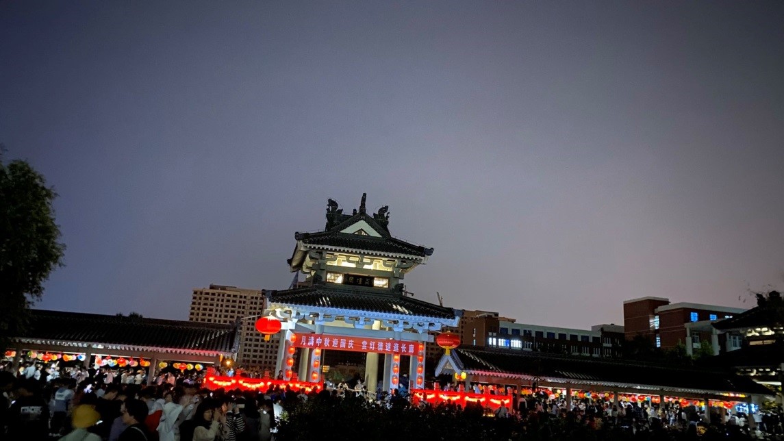 中秋月满园,国庆喜相逢。为深入贯彻落实立德树人根本任务,强化学校“文化育人”办学特色,深入挖掘中秋节、国庆节凝结的优秀传统文化和爱国主义内涵,培养学生社会主义核心价值观,教育引导学生弘扬传承中华优秀传统文化精神,365官网于9月30日组织开展“过好中国节日 讲好中国故事——月满中秋迎国庆 赏灯猜谜逛长廊”主题活动。学校党委书记王玉华出席活动,并与上千名学生欢度中秋佳节,党委办公室、校长办公室主任牟伟,学生工作部(处)部长孙磊陪同参与活动。