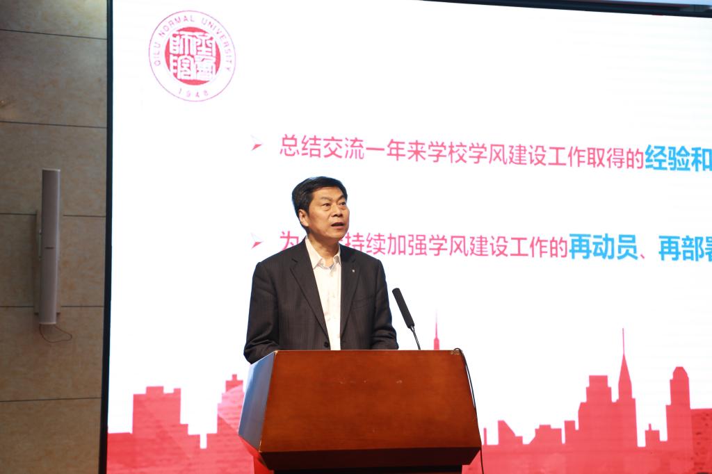 林松柏强调,全校上下要提高站位,不辱使命,对学风建设重要性“再认识”。学风建设与高校人才培养目标、学校发展理念、学生全面发展的诉求均具有高度一致性,要培养担当民族复兴大任的时代新人,需要以深入推进学风建设为切入点,着力构建具有齐鲁师院特色的学风建设体系,助推学校各项改革事业全面、持续发展。要科学导向,以文化人,对学风建设目标“再深化”。切实发挥“七个提高”“四个减少”和“两个为零”目标的科学导向,将宏观与微观、目标与手段、激励与考核相统一;强化“以文化人”理念引领,在“学”字上做文章,加强认知与认同,在“合”字上下功夫,推进贯穿与融入,在“行”字上求实效,注重践行与示范。要创新探索,落细落实,对学风建设举措“再推进”。打造好“学风引领计划”这一品牌的特色和亮点,突出先进典型的示范引领作用,开创榜样育人新模式;用好教书育人第一课堂、素质提升第二课堂、网络思政第三课堂,将课内课外、线上线下、校内校外有机结合,筑牢教育教学主阵地;抓好教师、管理人员、学生骨干“三支队伍”,融教书育人、管理育人、朋辈育人为一体,形成合力育人新生态;培育良好校园、班级、公寓、社团“四类文化”,传承弘扬学校文化传统和人文精神,践行“博学明道,崇德象贤”校训精神,营造良好学风环境。