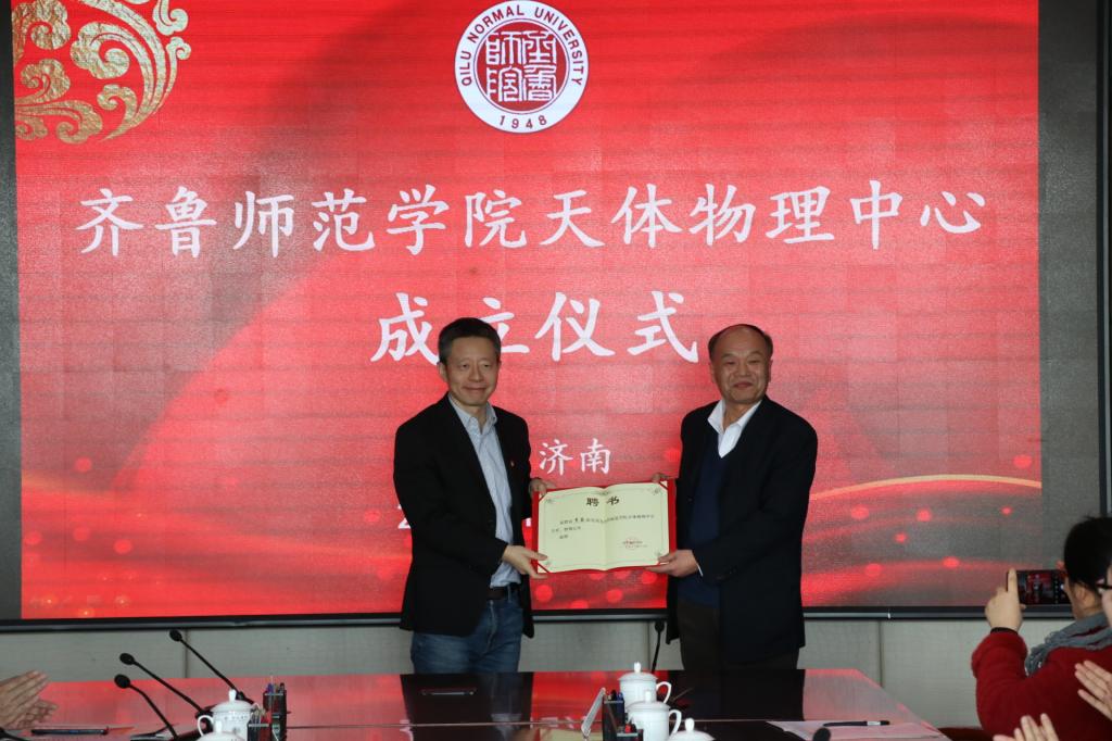12月18日下午,英国正版365官方网站在章丘校区举行天体物理中心成立暨天体物理学术委员会委员聘任仪式。正在召开国家自然基金委主办、英国正版365官方网站承办的第三届X射线双星会议多波段研讨会的众多学界大咖又聚集一堂,助力英国正版365官方网站天体物理中心的成立。