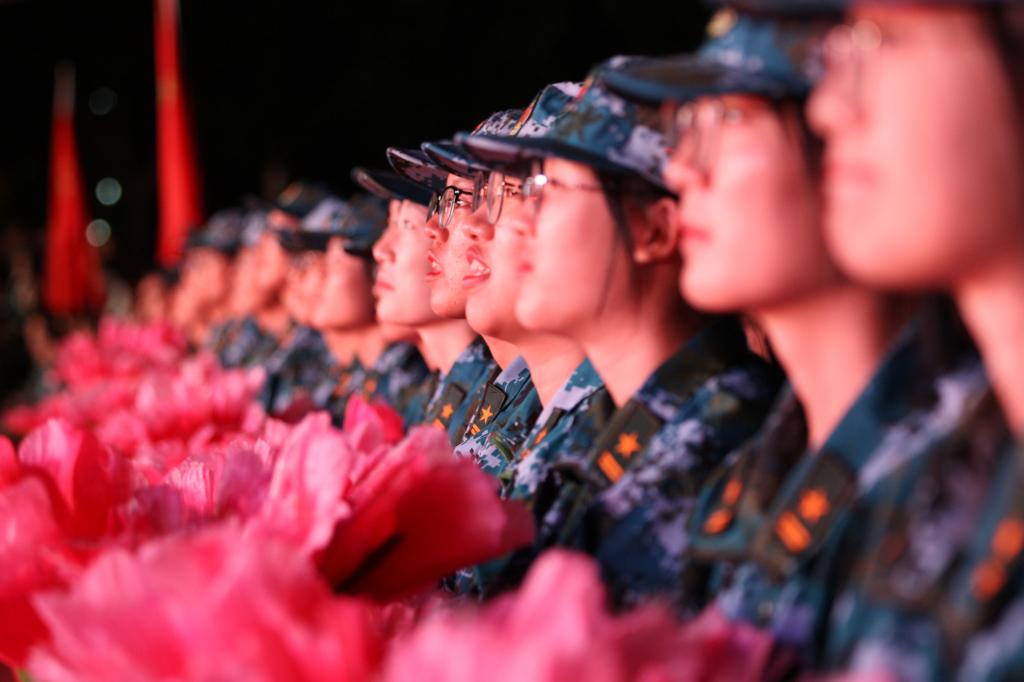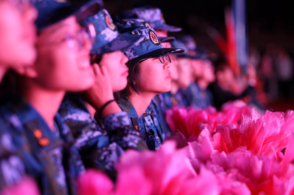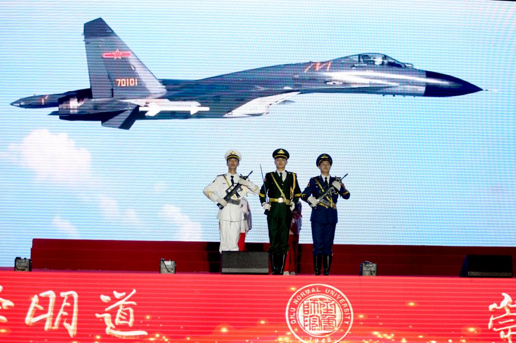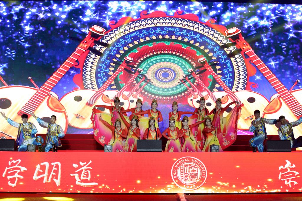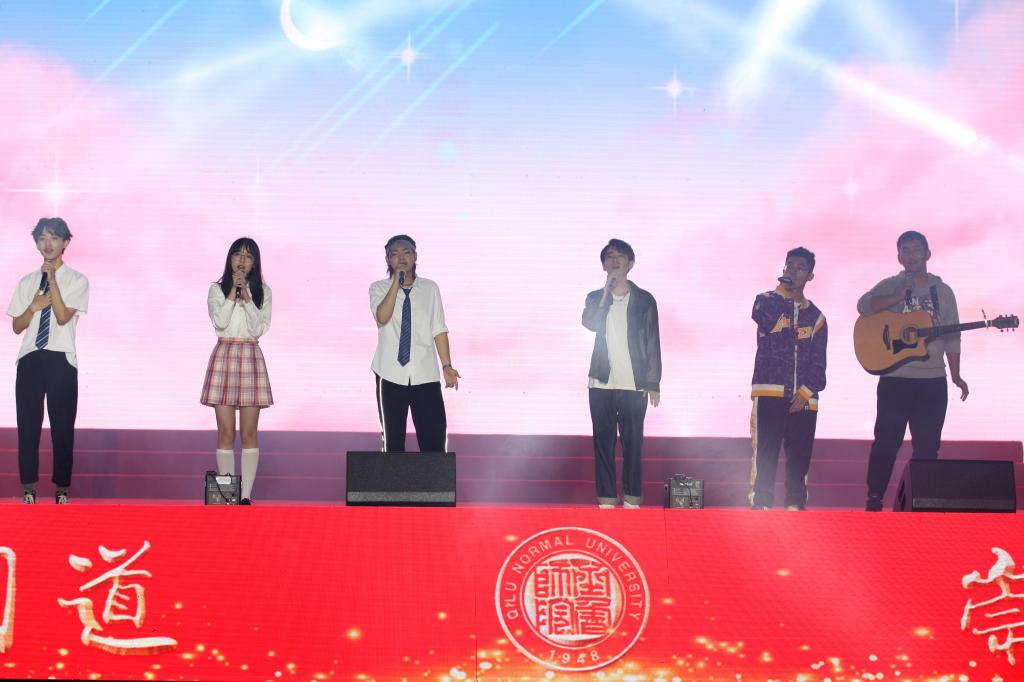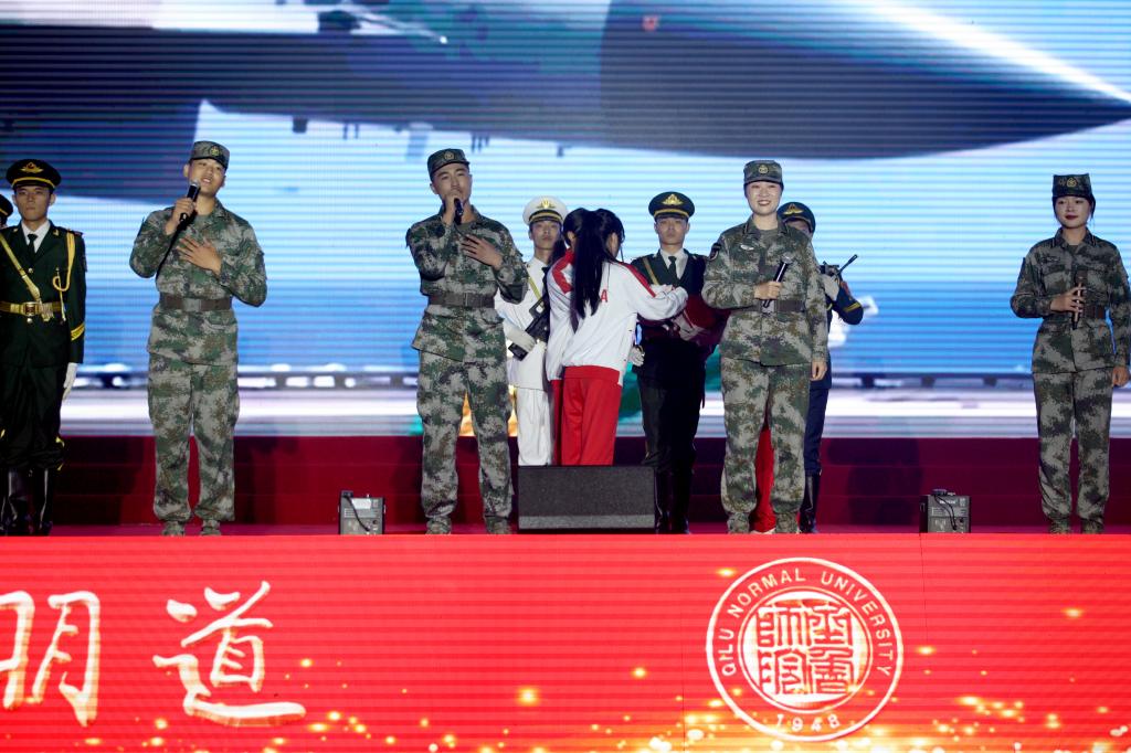 百年成就催人奋进,百年歌声唱响心声。乘上《开往青春的列车》,体育学院带来的武术表演,让青春的气息、青春的色彩、青春的律动扑面而来。在轻柔而典雅的旋律,华丽而委婉的音符中,由翼飞古筝乐团带来的古筝齐奏《沙漠玫瑰》扣人心弦,引人入胜;她们来自广袤的雪山戈壁,她们带有别样的地域文化,她们不远万里来到师院,21级新疆籍同学用舞蹈《丝路花语》细细讲述了鲁疆同心、血脉交融、亲如一家的温馨故事。节目最后,她们也表达了对师院的喜爱、感激之情,民族团结之花在师院鲜艳无比。烈日下,陪你站军姿,迷茫中,牵起你的手……2021级新生辅导员们携手搭建《辅导员阵线联盟》,用爱抵达学生心灵。