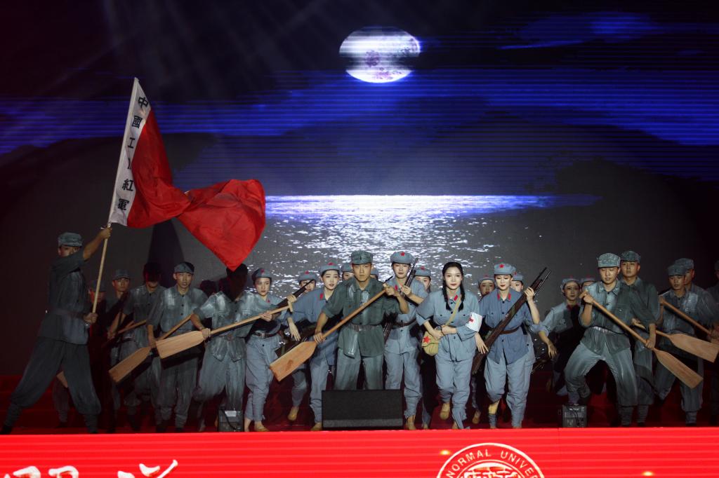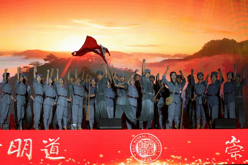 百年征程波澜壮阔,百年初心历久弥坚。万里山河,胸怀辽阔!值此伟大的中国共产党百年华诞欢庆之时,师院青年们用深情的歌声唱响《灯火里的中国》,礼赞伟大的党、伟大的祖国;百年青春,起航新程。诗朗诵《我们》追忆革命先烈,凝聚青年力量,号召广大青年立大志、明大德、成大才、担大任,努力成为堪当民族复兴重任的时代新人。追忆四渡赤水,弘扬长征精神。情景舞蹈《四渡赤水》,气势磅礴,震撼人心,在不屈的舞韵中将“坚持真理、坚守理想,践行初心、担当使命,不怕牺牲、英勇斗争,对党忠诚、不负人民”的伟大建党精神展现的淋漓尽致。强国一代,奋斗有我!在退伍大学生代表《强国一代有我在》的奋力呐喊中,师院青年们的爱国心、报国志、强国情被激发出来,他们热血沸腾,豪情万丈,在心中再次坚定地许下“请党放心 强国有我”的青春誓言。
