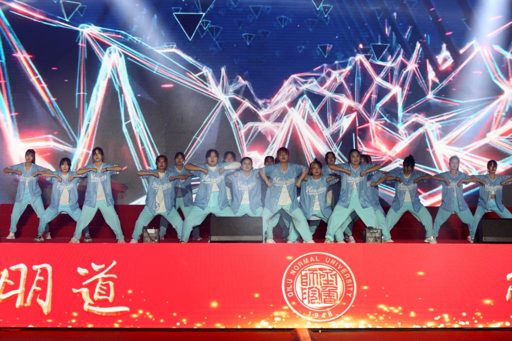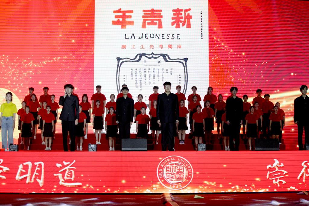 百年奋斗使命不负,百年新程扬帆起航。如果信念有颜色,那一定是中国红。舞蹈《沁园春·雪》,用肢体迸发出强大的力量,将红色的信仰,红色的传承,红色的血脉倾情演绎出来;小萌新们不甘示弱,他们用青春点燃激情,用歌声放飞梦想,一曲曲经典歌曲串烧,让现场气氛再次热烈起来。劲歌热舞,活力四射。舞蹈《block》带同学们感受青春校园的无限魅力,感受青春的力量;百年求索,百年追寻。文艺展演活动在迟英娟、杨靖、张智、徐定兴四位老师演唱的歌曲《百年》中落下帷幕。