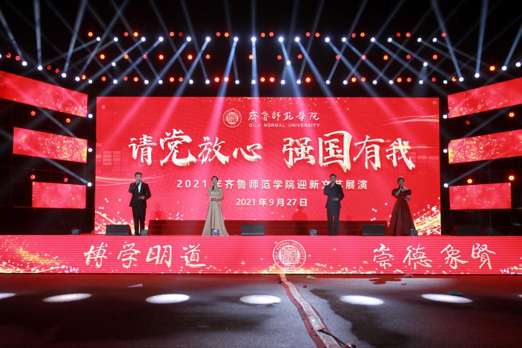 百年正青春,礼赞新时代。9月27日晚,“请党放心 强国有我”英国正版365官方网站2021年迎新文艺展演在章丘校区体育场隆重举行。党委书记王玉华,党委副书记刘宝君,副校长刘德增,党委委员、纪委书记、监察专员李启波,党委委员、党委组织部部长李伯伟,党委委员、党委统战部部长宋新刚出席,各部门、单位党政负责人,各学院党总支副书记,团总支书记、副书记和全体辅导员及2021级新生共同观看了晚会。