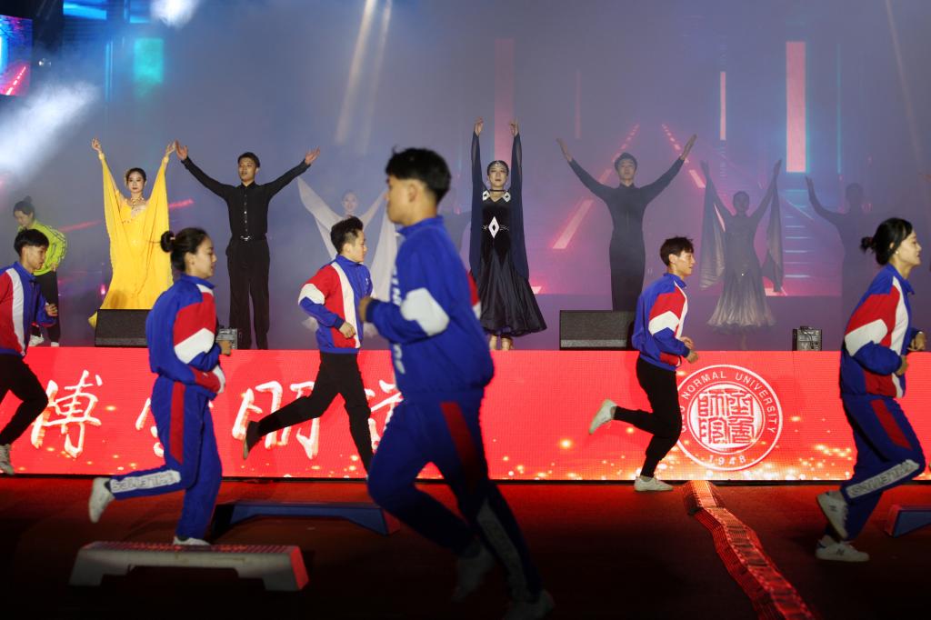 把握青春脉搏,迸发无限活力。“不一样的青春一样精彩”“不一样的舞台一样喝彩”……晚上7点,歌舞表演《奔跑的青春》正式拉开此次文艺展演的序幕。细雨难消热情,激昂的歌声、青春的舞步瞬间点燃现场气氛。“初心逐梦,千帆竞发”“奋楫前行,力争今朝”“放飞梦想,扬帆起航”三个篇章次第推进,由师院青年勇立潮头争做先锋的担当、披荆斩棘勇敢拼搏的信念、朝气蓬勃活力无限的风采共同构成的一幅色彩缤纷的新时代青春画卷,在舞台上徐徐展开。