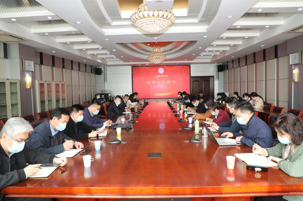 会上,教务处处长孙洪兆报告了2022年教务处主要工作计划,并从专业建设、师范生培养、基地建设、课程建设、招生宣传、线上教学、毕业实习、质量工程项目建设、教学成果奖培育、教材建设、学生竞赛、疫情防控等层面进行了详细的解读说明。教务处副处长李剑和于家杰分别就线上教学、开学初工作准备、师范生免试认定工作、师范生实习、学籍管理、教室管理等工作做出了具体的安排和布置。