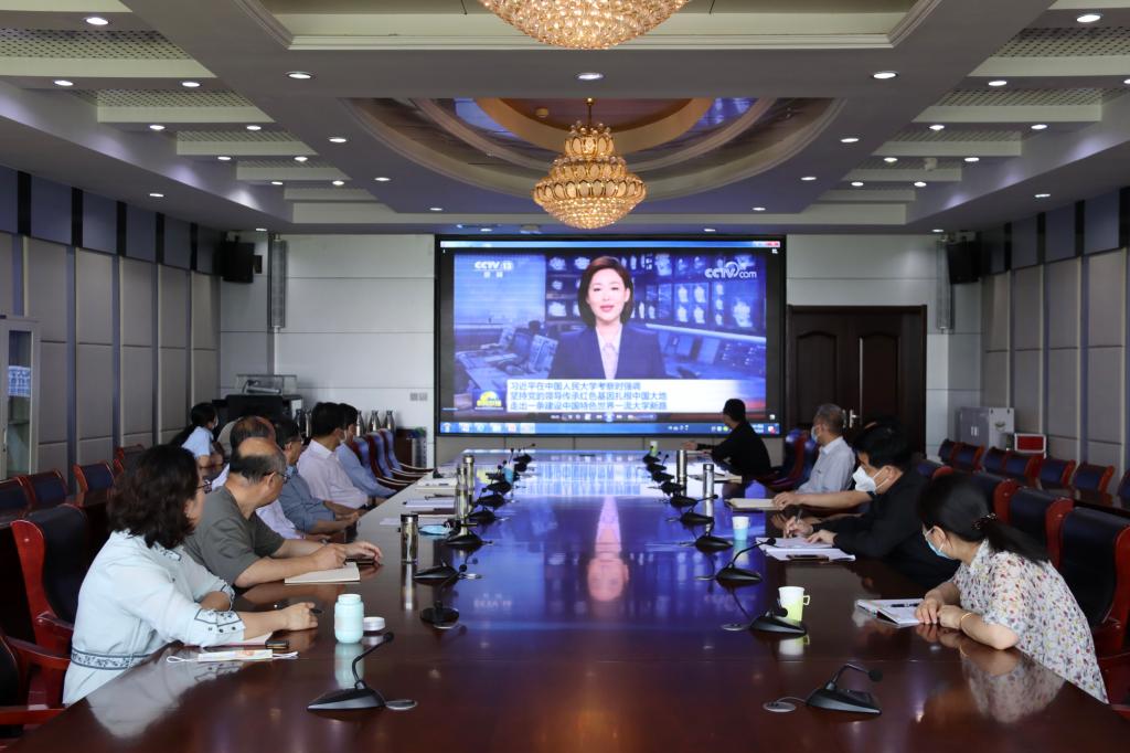 会上,中心组成员利用“学习强国”平台视频学习习近平总书记4月25日在中国人民大学考察调研时的重要讲话精神、习近平总书记5月2日给中国航天科技集团空间站建造青年团队回信精神。党委副书记、校长林松柏领学人民日报评论员文章:《扎根中国大地办大学》。中心组成员围绕学习内容,就贯彻落实习近平总书记重要讲话精神、重要回信精神,结合近期学校工作进行了交流讨论。