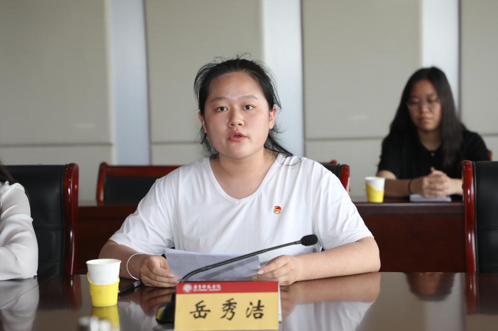 在汇报发言环节,团委书记孔庆松、经济与管理学院团总支书记高超、生命科学学院团总支书记张宏熙、学前教育学院学生岳秀洁,围绕学习贯彻落实习近平总书记重要讲话精神,联系工作实际,谈心得体会。孔庆松表示,学校团委将把学习贯彻习近平总书记重要讲话精神作为首要政治任务抓在手、悟在心、行在前,闻令而动、听令而为、顺令而行,号召各级团学组织持续广泛开展务实有效的宣传教育活动,汇聚起365官网“党管青年”巩固性积累、拓宽性发展、创新性实践的磅礴青春力量。高超表示,要从政治上着眼、从思想上入手、从青年特点出发,紧扣服务青年的工作生命线,千方百计为青年办实事、解难事,主动想青年之所想、急青年之所急,让广大青年真切感受到党的关爱就在身边、关怀就在眼前。张宏熙表示,要承诺践诺、不辱使命,努力做坚定信念、胸怀天下,争做有理想、有追求的共青团干部;做善于学习、勤于学习,争做有技能、有担当的共青团干部;做牢记使命、勇挑重担,争做谋改革、促发展的共青团干部;做解放思想、开拓进取,争做勇创新、敢创业的共青团干部;做修德立行、锤炼品格,争做立师范、当表率的共青团干部。岳秀洁表示,我们要谨遵习近平总书记对新时代青年学子的谆谆告诫和殷殷嘱托,信念坚定、不忘初心,为使命宗旨“立心”;刻苦学习、敏于求知,为成事做人“立身”;担当实干、砥砺奋斗,为岗位职责“立行;坚持原则、敢于斗争,为同学立场“立言”;严守规矩、不逾底线,为锤炼作风“立德”。
