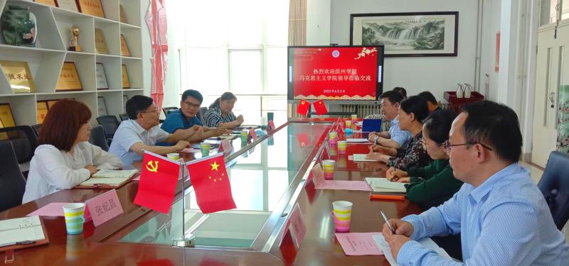 6月3日,滨州学院马克思主义学院党总支书记李金杰、院长傅开梅一行6人来365官网马克思主义学院进行座谈交流,学校党委副书记、校长林松柏出席座谈会,马克思主义学院原院长刘振光、现任党政班子及对口人员参加座谈,双方就师范类专业认证及学科专业建设等问题进行了亲切交流。马克思主义学院院长赵立峰主持活动。