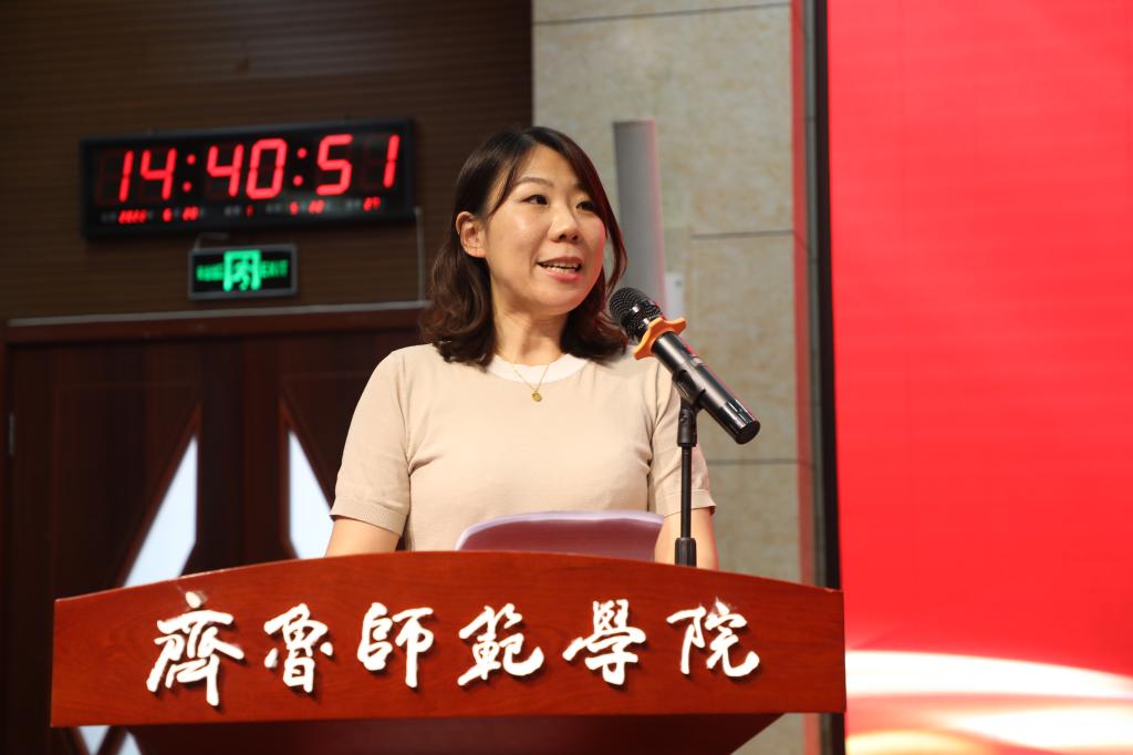 在大会交流发言环节,学生工作部(处)部长孙磊、音乐学院党委副书记迟英娟、团委书记孔庆松、化学与化工学院杨睿,作为获奖集体代表、个人代表依次上台发言。