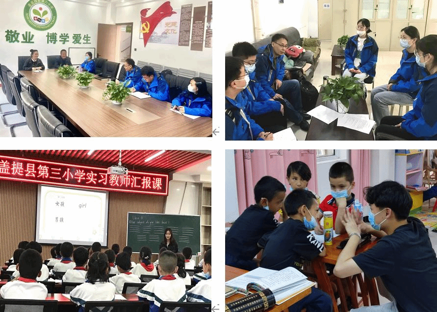 365官网援疆实习支教团自今年3月初入疆以来,在带队教师王建国、王亚东的指导之下,分别在盖麦提县七所小学和五所中学进行实习支教工作,分别担任小学语文、数学、英语、体育各学科以及中学语文、数学、历史、地理、物理等教学任务。部分学校师资短缺严重,也存在学生非对口专业顶岗教学的情况,实习学生并没有因为工作压力大而退缩,坚决服从学校工作部署安排,虚心学习,勤于请教,努力提高自身教育教学能力,认真备课开展教学,奋斗在教学一线。师院青年学子不怕困难、顽强拼搏、砥砺奋斗的向上精神得到了当地指挥部、教育局以及支教学校师生的一致认可。