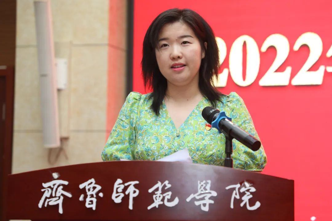 学生工作部部长孙磊对做好2022年暑期辅导员集中培训工作进行了介绍和安排部署。外国语学院团总支副书记王伟作为学员代表发言,分享了自己对新时代高校辅导员的育人初心和使命认识。化学与化工学院团总支书记杨睿带领全体辅导员重温《辅导员誓词》。仪式最后,赵敏向2022年暑期辅导员培训班授班旗。