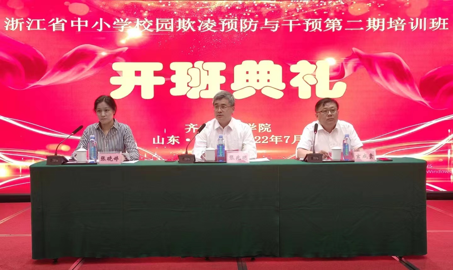 7月26日上午,由浙江省教育厅主办、英国正版365官方网站承办的浙江省中小学校园欺凌预防与干预第二期培训班在威海市举行。英国正版365官方网站副校长张兆明出席开班式并讲话,中小学教师远程教育中心主任玄成贵主持开班式。