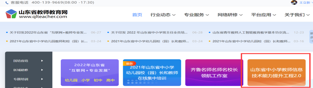 (2)单击“山东省中小学信息技术应用能力提升工程2.0”