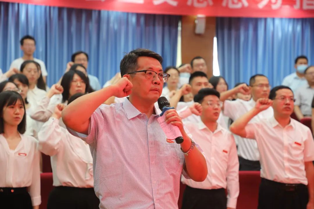 在山东省优秀共产党员、山东学校思政课教师年度人物、马克思主义学院刘振光教授领誓下,与会教师集体宣誓。铮铮誓言响彻会场,激励着广大教师以实际行动维护教师职业的神圣与尊严,切实肩负起时代赋予的光荣使命。