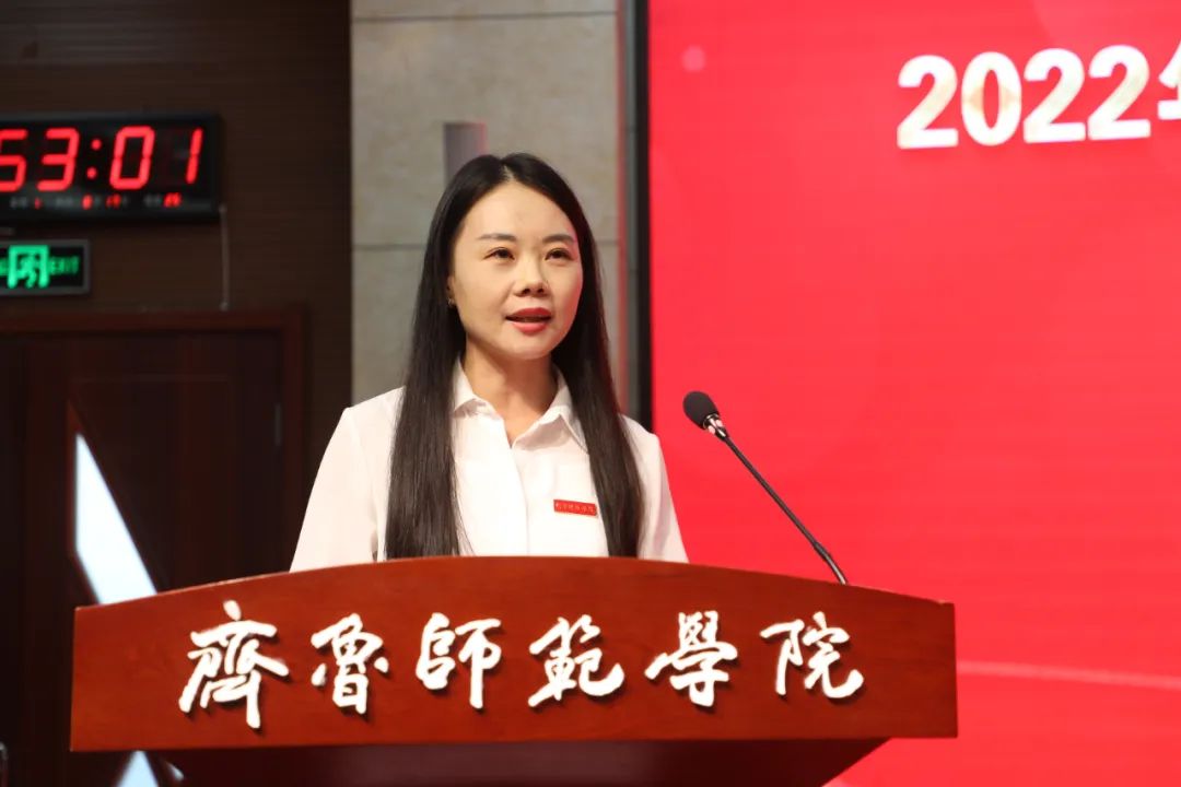 新进教师代表、历史文化学院楚国帅博士在发言中用“感谢”“温暖”“努力”三个关键词表达内心真挚的情感,她表示,将以“学高为师,身正为范”做为自己的从业准绳,虚心向老教师请教,教书育人,潜心科研,做好学生引路人,努力成长为一名优秀的人民教师。