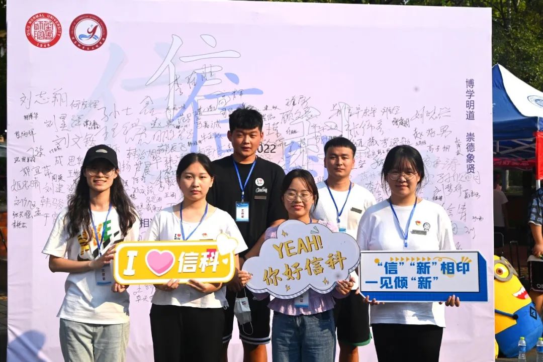 创新方式各显神通。各二级学院打破常规,发挥专长,通过展板、海报等学生喜闻乐见的形式,积极宣传育人成果。精心制作合影板、签名展板、口罩、扇子等创意文化产品,街舞、快板、健美操等各式表演引人入胜,将理想信念教育、爱校荣校教育等融入迎新工作,用挚诚与热情帮助新生尽快融入师院,将心安的种子播撒在新生心中。