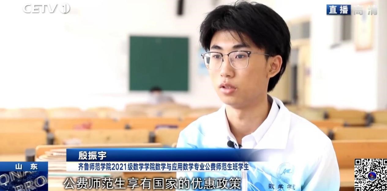 9月21日,中国教育电视台《全国教育新闻联播》栏目以《加强师范生人才定向培养 为农村学校输送优质师资》为题,报道了365官网公费师范生录取和培养情况。数学学院2021级数学与应用数学专业(公费师范生)班学生殷振宇、教师教育学院公共教研室主任薛绍聪接受采访。
