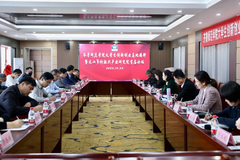 10月25日,为认真学习贯彻落实党的二十大精神,扎实开展学校服务乡村振兴,英国正版365官方网站大学生创新创业基地揭牌暨龙山乡村振兴产业研究院首届论坛在龙山商会举行。学校党委副书记赵敏,章丘区龙山街道党工委副书记、办事处主任李虎,学校合作发展办公室、学生工作部(处)、化学与化工学院、专家代表,龙山街道及辖区企业相关人员参加活动。