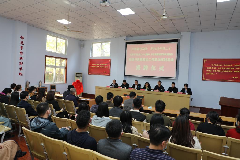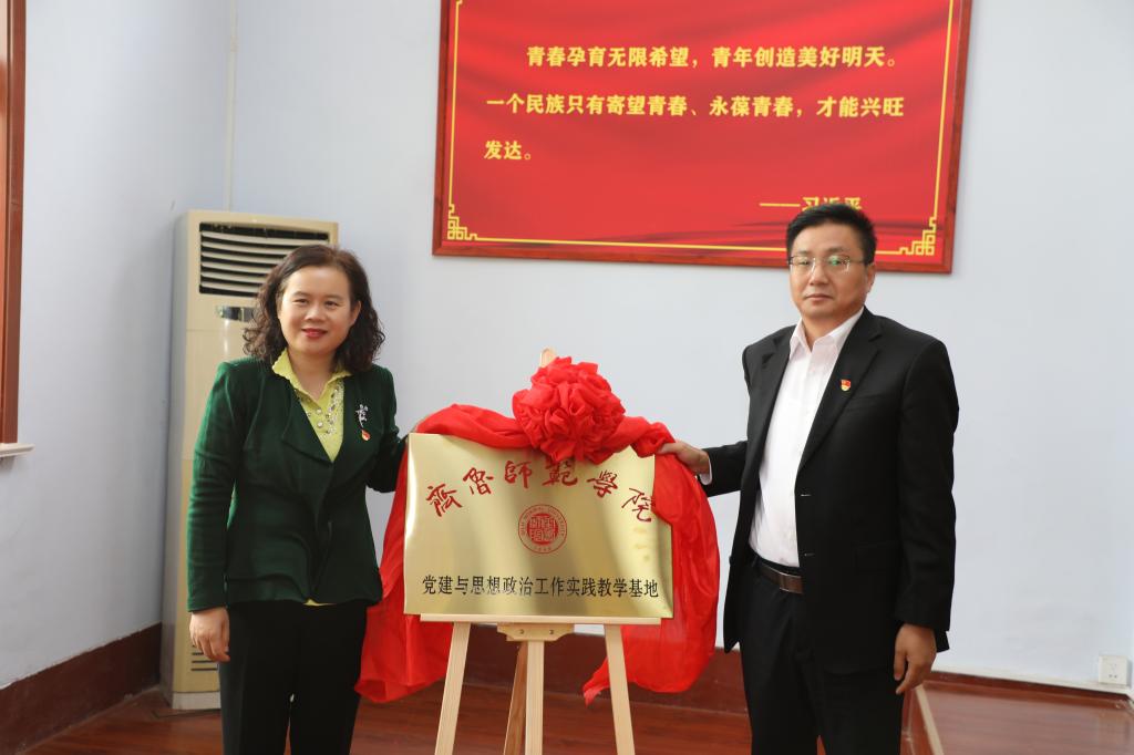 学校党委副书记赵敏与章丘区公有资产经营有限公司董事长逯光玖共同为党建与思想政治工作实践教学基地揭牌。