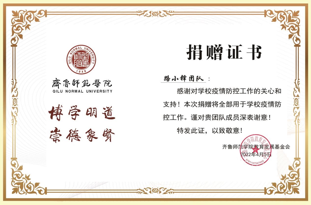 严肃的外表下,路小铎拥有着一颗善良柔软的心。今年上半年,学校疫情形势较为严峻,路小铎科研团队不仅积极配合学校疫情防控政策,主动投身疫情防控志愿服务工作,还捐款5万元,助力学校疫情防控工作,展现出浓厚的家国情怀和担当精神。