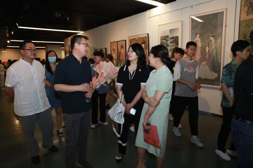 杨三军在致辞中说,经过新冠疫情的严峻考验,本届毕业展览极具时代意义,疫情期间经过了线上线下相结合的学习及云课堂的体验。本次毕业展大家通过努力,向社会展示自己的学习和创作的成果,为自己的大学学习画上完美的句号,契合当下美育的推广与普及,建议同学们学会倾听,学会倾听是成熟的开始。在对学生的期望中谈到三个珍惜:珍惜专业,做新时代的美育传播者;珍惜时间,让给自己未来的人生更加饱满;珍惜未来,把握当下与未来的关系,未来即当下,坚定踏实地实现自己的人生理想,创造属于自己的未来。