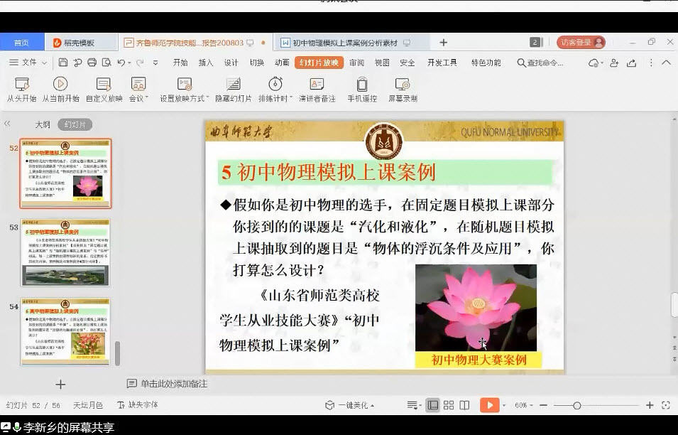 8月3日上午9时30分,物理与电子工程学院特邀曲阜师范大学 李新乡教授作题为“仔细研读通知 精心准备大赛”的教学技能大赛专题专题线上报告。该报告由物理与电子工程学院张洁院长主持,副院长姬长建、教学技能大赛校外、校内指导教师以及物理学专业部分学生参会聆听了本次报告。