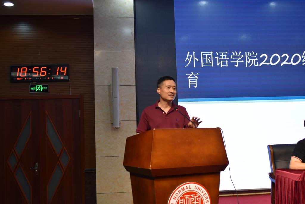 李百温副院长从学院领导班子、师资力量及过硬的基础设施向新生介绍学院总体情况,希望同学们在外国语学院温馨大家庭里,充分利用良好学习环境,勤奋学习,学业有成。