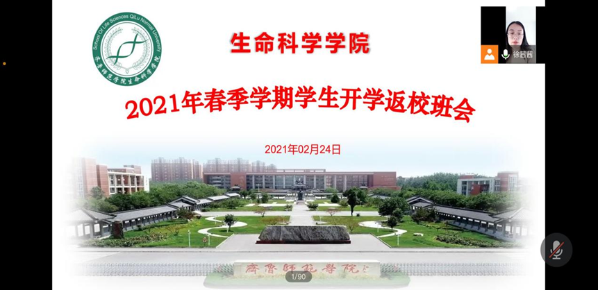 为保障2月28日生命科学学院开学平稳有序,进一步加强学院学生返校安全教育,做好疫情防控常态化时期学生返校工作,2月24日,生科院辅导员张宏熙、房继德、祖群、徐茜茜四位老师向全院学生召开线上班会,部署学生返校工作有关事宜。