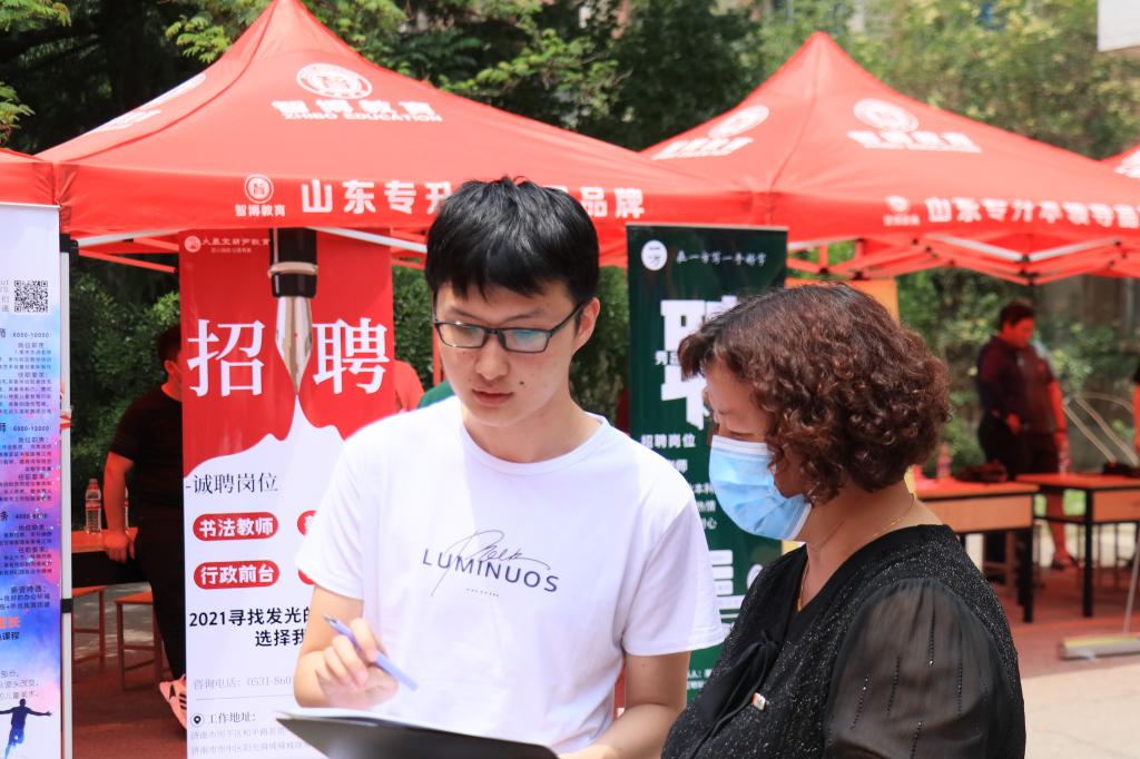 6月9日上午,英国正版365官方网站美术学院毕业生就业双选会在历下校区举办。本次双选会吸引了200余名毕业生同学现场参加。华图教育集团、济南市青少年宫、米多多少儿艺术、诚励书画教育等23家用人单位来校开展宣讲和双选活动,为2021届毕业生提供80多个优质招聘职位。
