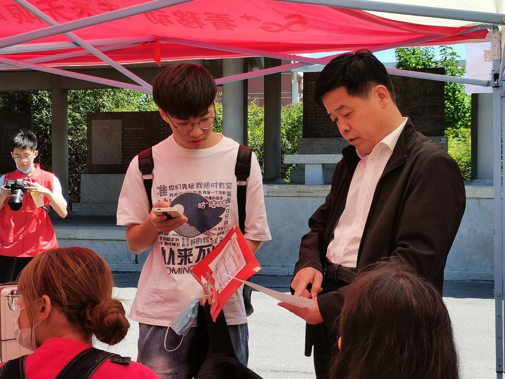 外国语学院领导和老师们前来探访报道点并指导工作,表达了对新生的欢迎和问候,询问目前报道具体情况,展现出外国语学院对迎新工作的重视和老师们的殷切关怀。