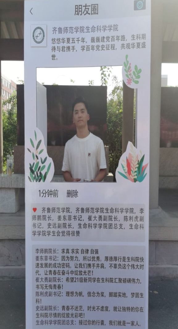遵循旧例,学院在接待点设置了经典打卡项目——“欢迎来到我的朋友圈”,让2021级新生留下第一张入学初“印象”。新生报到处陈列的有关专业特色详细介绍、优秀教师风采展示、考研学生风采等图文并茂的宣传展板,带领新生初步了解学院的整体概况和学术氛围。